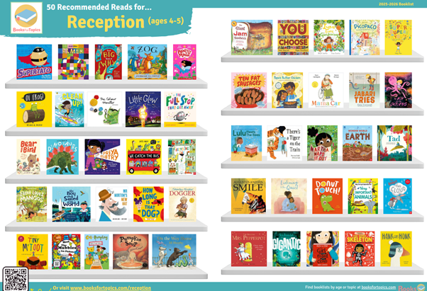 We love reading in school. If you would like some book ideas for age-appropriate stories at home, here are 50 recommended texts by year group: